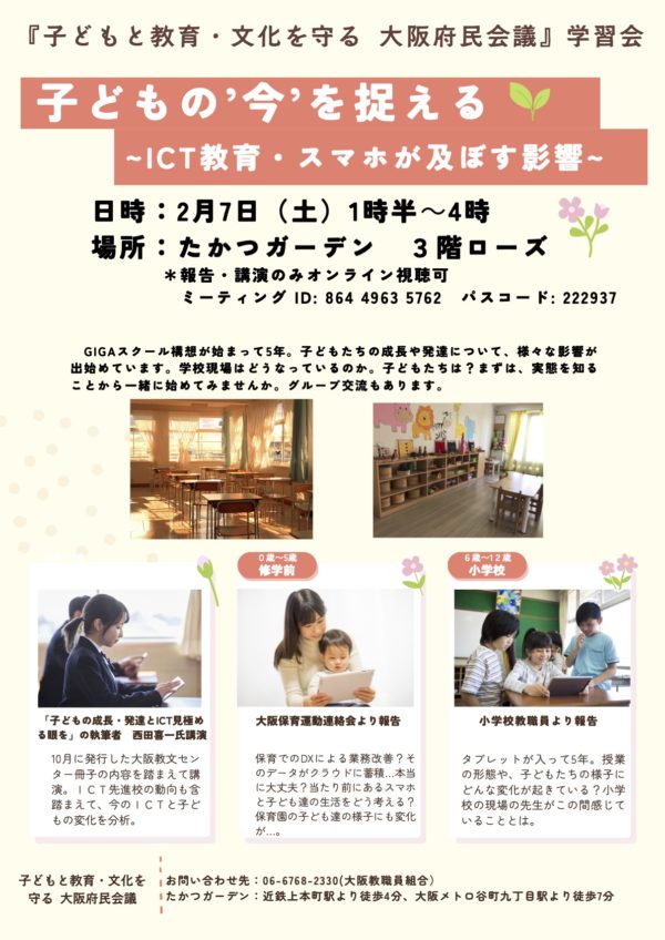 府民学習会「子どもの今を捉える~ICT教育・スマホが子どもに及ぼす影響~」(2月7日)