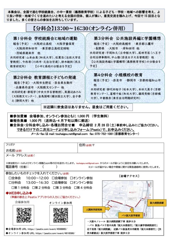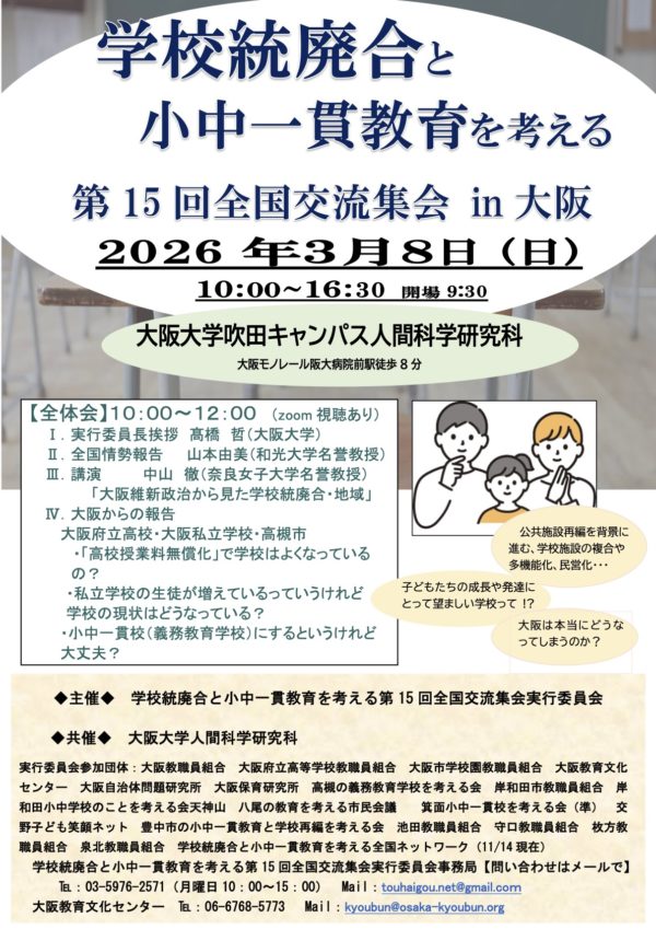 学校統廃合と小中一貫教育を考える第15回全国交流集会実行委員会